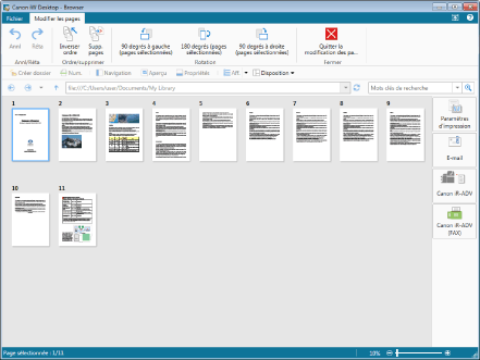 Lorsque le Mode Modifier les pages est actif, la Fenêtre d'aperçu est agrandie et vous pouvez modifier les documents PDF.