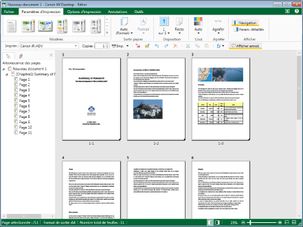 Desktop Editor ajoute des paramètres d'impression à des documents et permet d'effectuer des opérations telles que le réglage et la modification de documents. Il est également possible de combiner des documents, de modifier l'ordre des pages et de supprimer les pages inutiles. L'enregistrement au format IWB (*.iwb) permet d'enregistrer des paramètres d'impression avec le document.