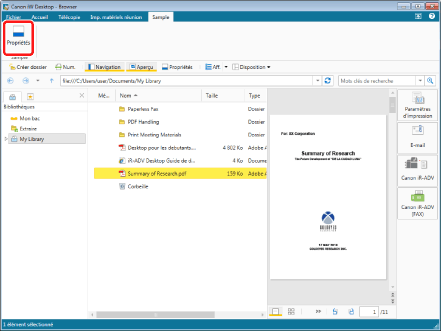 Cette opération peut également être effectuée avec les boutons d'outils de la barre d'outils. Si les boutons d'outils ne sont pas affichés sur la barre d'outils de Desktop Browser, consulter les rubriques suivantes pour les afficher.