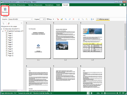 Pages du document PDF sélectionné dans la fenêtre d'aperçu de l'écran Desktop Browser ou du mode Modifier les pages