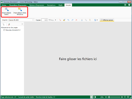 Il est possible de glisser-déposer tous les documents, les dossiers ou les pages qui peuvent être imprimés depuis l'ordinateur en cours d'utilisation pour créer un document IWB. L'ajout d'un document à partir de certaines applications peut toutefois provoquer une erreur d'importation.