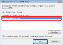 Lorsque l'on clique sur [Actualiser] dans la boîte de dialogue [Sélection d'un document IWB - Editor], la liste des documents ouverts dans Desktop Editor est mise à jour.