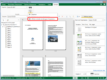 Pour plus d'informations sur l'impression des pages sélectionnées dans la Fenêtre de navigation ou la Fenêtre de travail de Desktop Editor, consulter la section suivante :