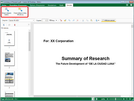 Il est possible d'ajouter tous les documents qui peuvent être imprimés depuis l'ordinateur en cours d'utilisation. L'ajout d'un document à partir de certaines applications peut toutefois provoquer une erreur d'importation.