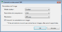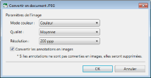 Cocher cette case pour convertir également des annotations en images. Si cette case n'est pas cochée, les annotations sont supprimées lors de la conversion.