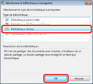 Si vous avez sélectionné [Créer une corbeille] à l'étape 7, un message de confirmation s'affiche lors du déplacement d'un document vers la Corbeille. Si vous cliquez sur [Oui], la Bibliothèque réseau dotée de la Corbeille est enregistrée. Si vous cliquez sur [Non], retournez à l'étape 7 et décochez la case [Créer une corbeille].