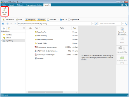Cette opération peut également être effectuée avec les boutons d'outils de la barre d'outils. Si les boutons d'outils ne sont pas affichés sur la barre d'outils de Desktop Browser, consulter les rubriques suivantes pour les afficher.