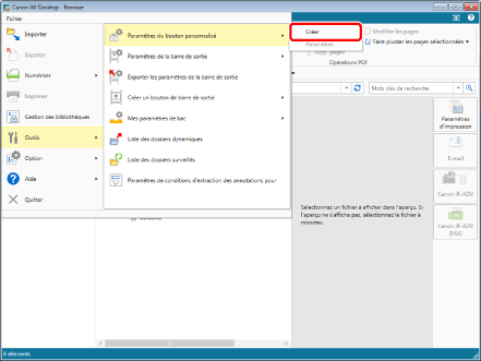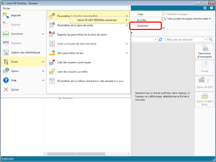 Le bouton personnel est supprimé de Desktop Browser, mais le bouton du Menu rapide du périphérique imageRUNNER ADVANCE ne l'est pas.