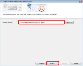 Spécifiez un dossier pour recevoir un document numérisé, avant de le transmettre au dossier de destination.