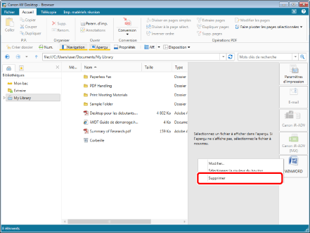 Il est possible de supprimer les boutons de sortie application enregistrés dans la barre de sortie dans l'écran Desktop Browser.