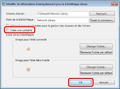 La boîte de dialogue [Modifier les informations d'enregistrement pour la bibliothèque réseau] s'affiche.