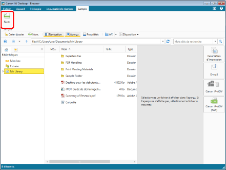 Quand vous sélectionnez un des emplacements suivants comme destination d'import, vous ne pouvez pas utiliser le scanner pour importer.