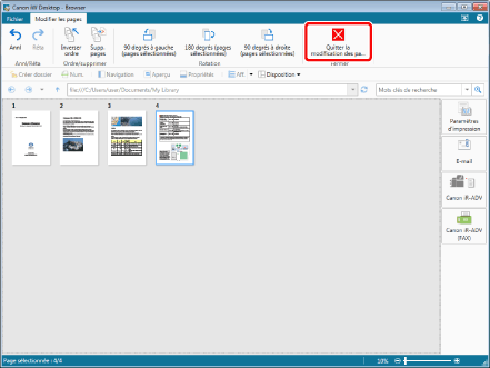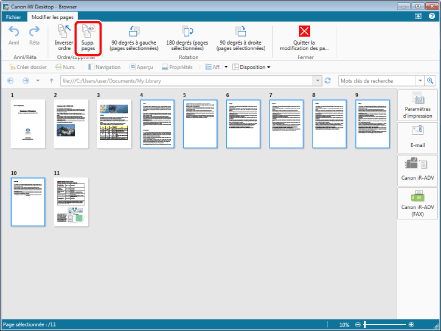 Lorsque vous utilisez la vue miniature vous pouvez sélectionner plusieurs pages en cliquant dessus tout en appuyant sur la touche [Shift] ou [Ctrl] du clavier.