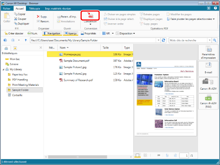 (Conversion) dans le ruban et sélectionner [Convertir en document PDF].