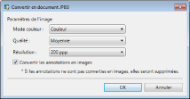 Cocher cette case pour convertir également des annotations en images. Si cette case n'est pas cochée, les annotations sont supprimées lors de la conversion.