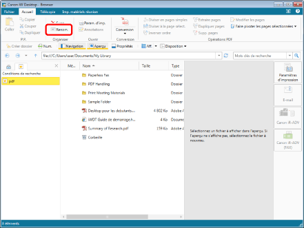 Sélectionnez la condition de recherche à renommer et cliquez sur [Renommer].