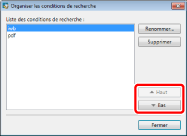 Sélectionnez la condition de recherche dont vous voulez modifier l'ordre, puis cliquez sur [Haut] ou sur [Bas] pour modifier l'ordre.