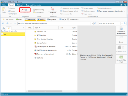 Ou, cliquez avec le bouton droit de la souris, et sélectionnez [Supprimer].