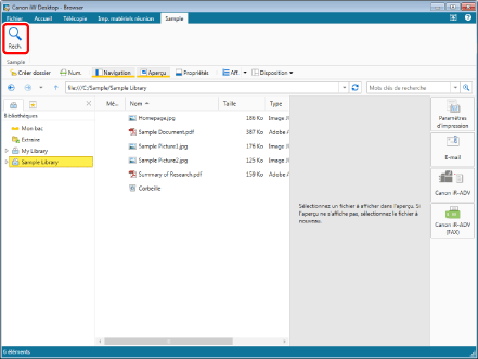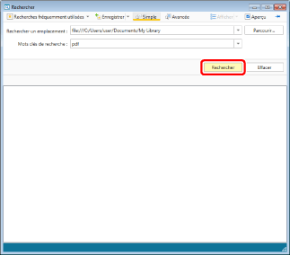 Les documents trouvés lors de la recherche peuvent être prévisualisés sur l'Écran de recherche. Pour plus d'informations, consulter la section suivante.