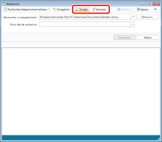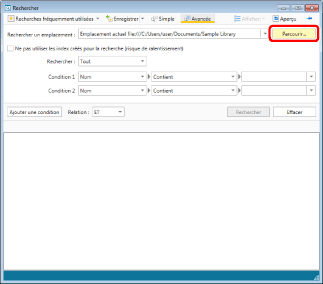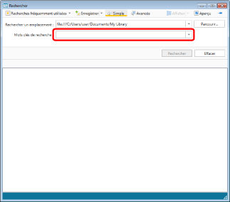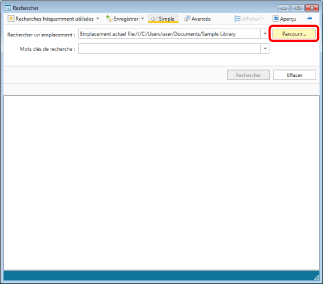 Le chemin d'accès de la bibliothèque ou du dossier cible de la recherche s'affiche dans [Rechercher un emplacement] dans l'Écran de recherche.