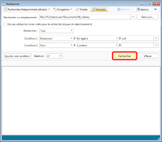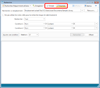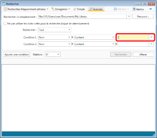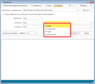 Pour rechercher un [Texte d'annotation] dans des bibliothèques réseau gérant les recherches en texte intégral, retournez à l'étape 6 et décochez la case [Ne pas utiliser les index créés pour la recherche (risque de ralentissement)].