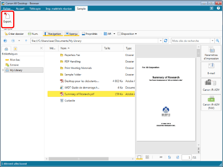 Si vous souhaitez exporter un document PDF configuré avec un mot de passe, vous devez saisir le mot de passe lors de l'exportation.