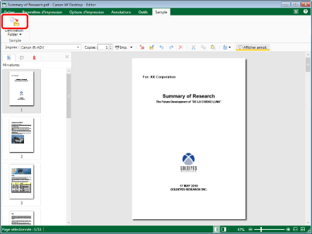 pour le Dossier de destination du document affiché sur le ruban ou la barre d'outils, puis sélectionner [Exécution].Si les boutons d'outil ne s'affichent pas sur la barre d'outils de Desktop Browser, voir la section suivante pour savoir comment les afficher.