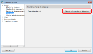 [Paramètres système] > [Browser] > [Télécopieur] > [Récupérer le numéro de télécopie]