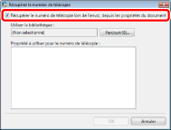 Sélectionnez la case [Récupérer le numéro de télécopie lors de l'envoi, depuis les propriétés du document].