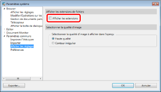 Pour modifier l'extension d'un document, modifier les paramètres de façon à ce que les extensions s'affichent de nouveau.