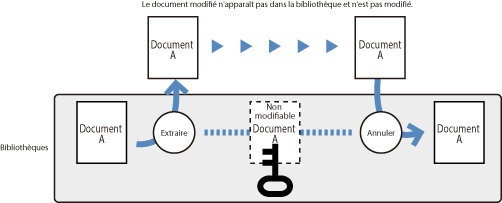 Si vous extrayez un document pour le passer dans une situation empêchant les autres utilisateurs de le modifier, l'annulation de l'extraction le ramène dans un état dans lequel il peut être modifié.