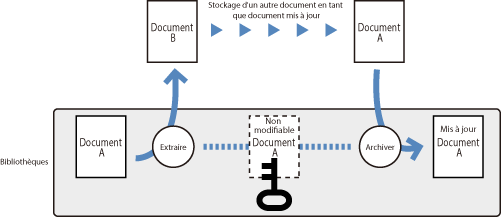 Il est possible d'extraire un document pour le faire passer dans une situation dans laquelle les autres utilisateurs ne peuvent pas le modifier. L'archivage peut être utilisé pour enregistrer un autre document en tant que document mis à jour.