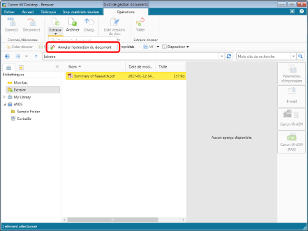 (Extraire) dans le ruban, puis sélectionner [Annuler l'extraction du document].