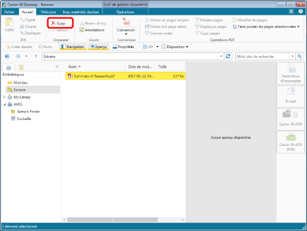 Le ou les documents sélectionnés sont supprimés.
