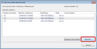 Il n'est pas possible d'afficher la boîte de dialogue [Liste des versions du document] pour plusieurs documents.