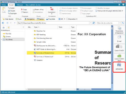 Il est possible de sélectionner plusieurs documents ou un dossier dans la Fenêtre de navigation.