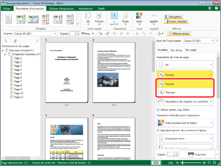 Pour plus d'informations sur la définition de l'orientation du papier en sortie chapitre par chapitre, consulter la rubrique suivante :