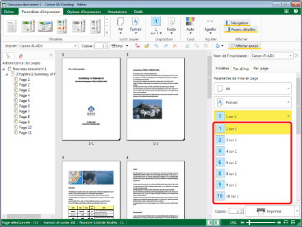 Si [Auto (Format)] est sélectionné dans les paramètres de format du papier en sortie, la mise en page est définie sur [1 sur 1].