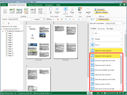 Si une option autre que [2 sur 1] a été sélectionnée pour la mise en page, il est possible de sélectionner les ordres suivants dans la liste déroulante.