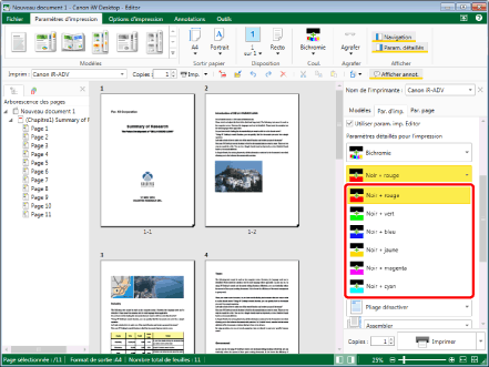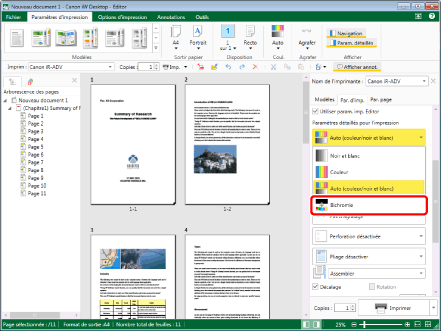 Le mode Bichromie ne peut être configuré que pour le document entier. Il ne peut pas être configuré par chapitre ou par page.