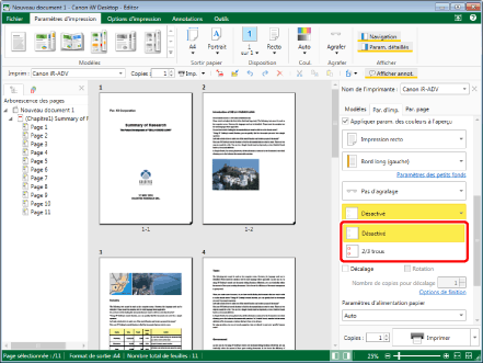 Cette fonction ne peut être utilisée que lors de la sélection d'une imprimante Canon lorsque la case [Utiliser param. imp. Editor] est cochée dans l'onglet [Par. d'imp.] de la Fenêtre Détails, de la commande du ruban ou du bouton d'outil.