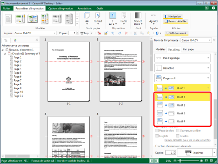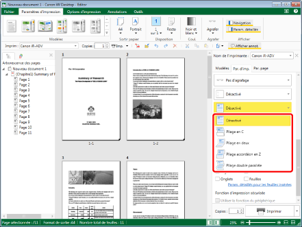 Les options de modèle de pliage disponibles dépendent de l'imprimante sélectionnée dans [Imprim].