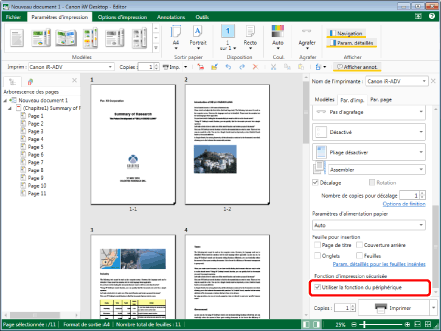 La Fenêtre de travail ne permet pas de vérifier si l'impression sécurisée est activée.
