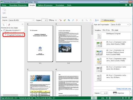 Les chapitres copiés peuvent également être collés dans un autre document.