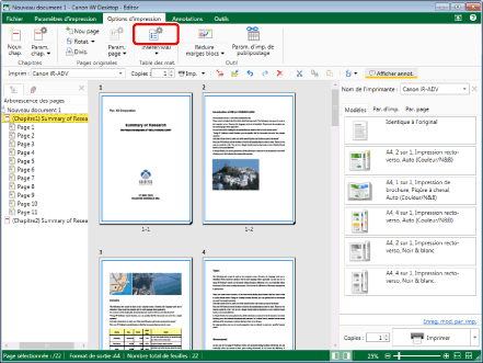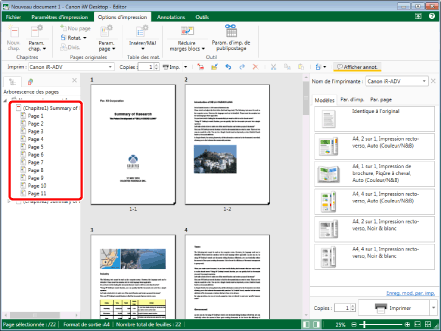 Les pages de la table des matières ne peuvent être ni dupliquées, ni supprimées, ni déplacées en dehors du chapitre "table des matières".