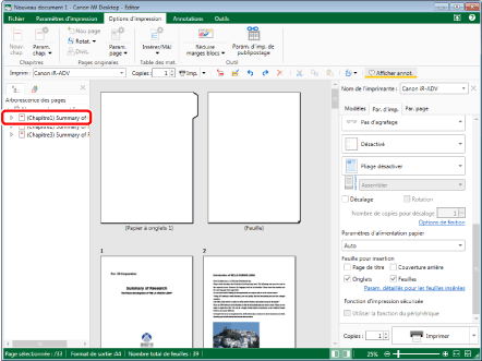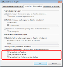 Si vous avez spécifié l'insertion de feuilles pour l'ensemble du document et si la case [Imprimer l'original sur des feuilles] est cochée dans la boîte de dialogue [Feuilles pour les paramètres d'insertion]