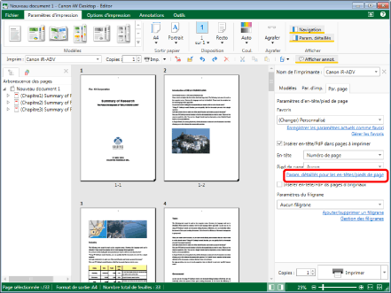 Pour plus d'informations sur la définition des paramètres d'en-tête et de pied de page avancés, consulter :