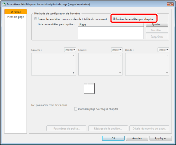 Si vous définissez l'en-tête/le pied de page chapitre par chapitre, vous ne pouvez pas sélectionner les éléments suivants.