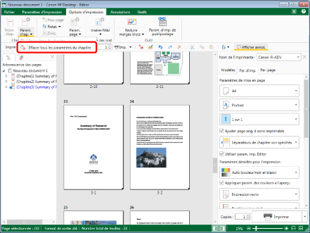 (Param. chap.) dans le ruban et sélectionner [Effacer tous les paramètres du chapitre].
