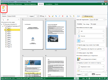 Il est possible de coller des pages qui ont été coupées ou copiées dans un autre document.